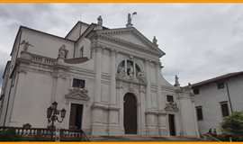Di ispirazione palladiana, il duomo, originariamente in stile gotico, domina la..